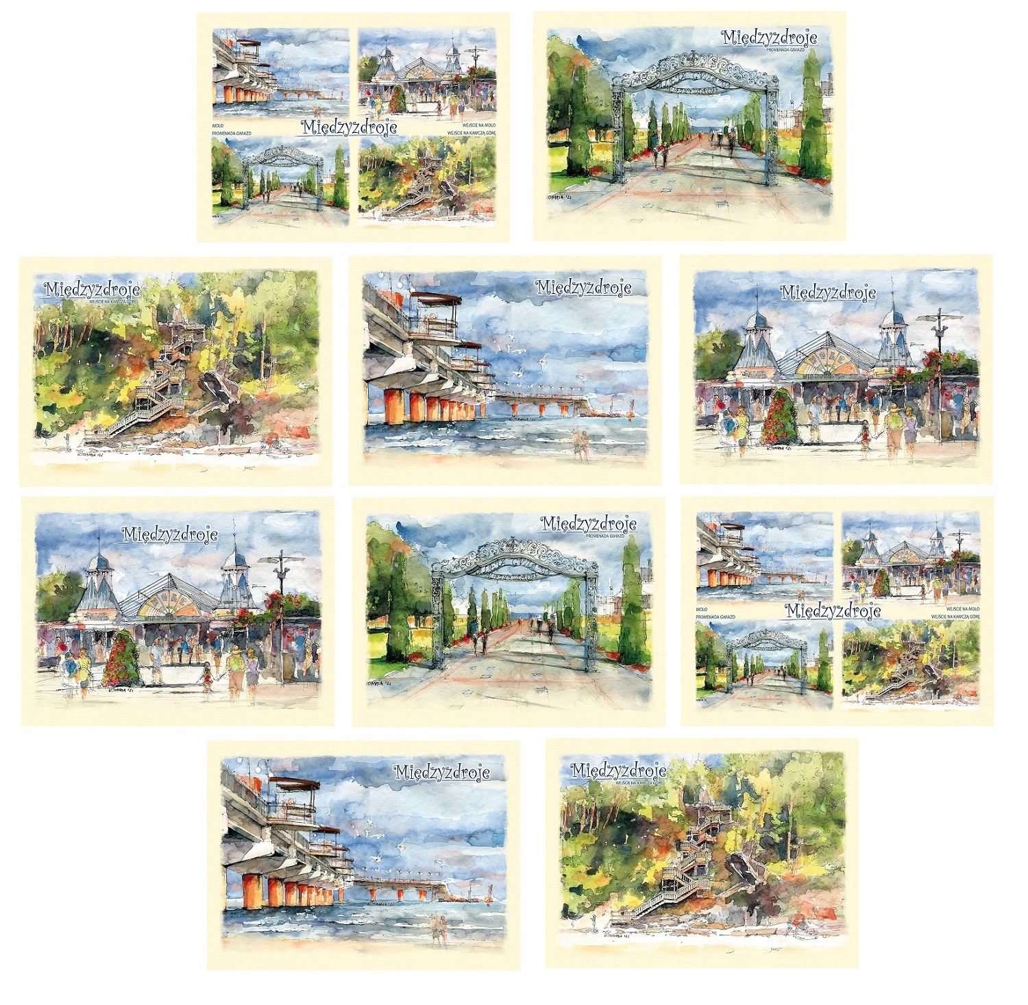 MIĘDZYZDROJE widokówki artystyczne 10 szt
