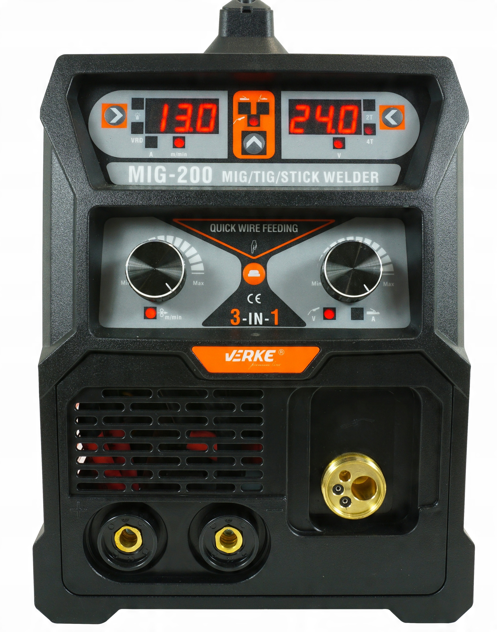 Виробник: VERKE ||| Методи зварювання: MIG/MMA/TIG ||| Максимальний зварювальний струм: 200A ||| Живлення: 230В