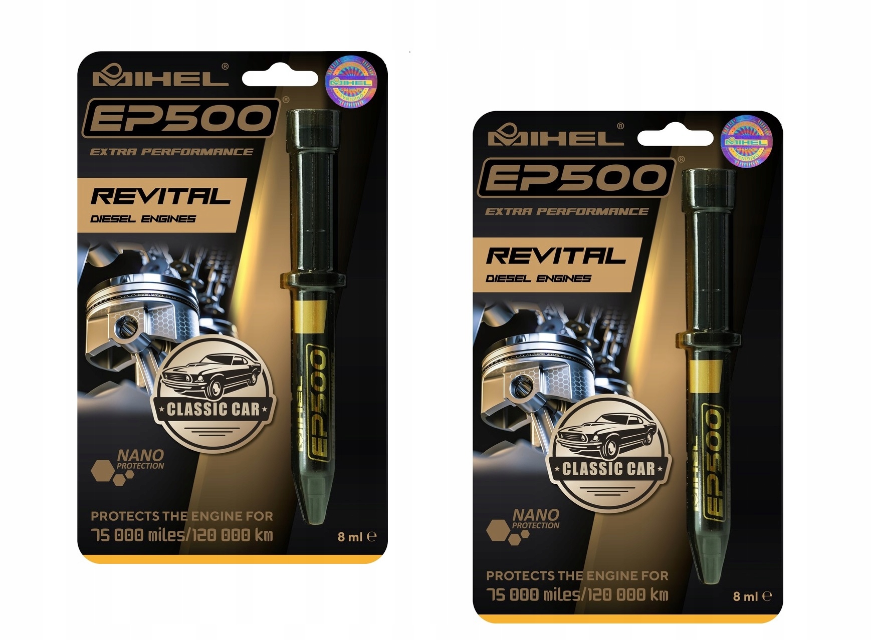 Mihel EP 500 для класиків - підготовка з високою ефективністю, розробленою для захисту та пожвавлення бензинових двигунів у класичних автомобілях. Інноваційна формула нано-молекул з високою поверхневою здатністю створює міцне стабільне керамічне та металеве захисне покриття з коефіцієнтом низького опору та відмінними властивостями теплопровідності на металевій структурі. Це спричиняє значне зниження тертя та постійний захист компонентів, практично усуваючи процес їх зносу. Регулярне використання дозволяє значно продовжити термін експлуатації двигуна. Призначений для транспортних засобів з пробігом понад 62 000 миль/100 000 км.