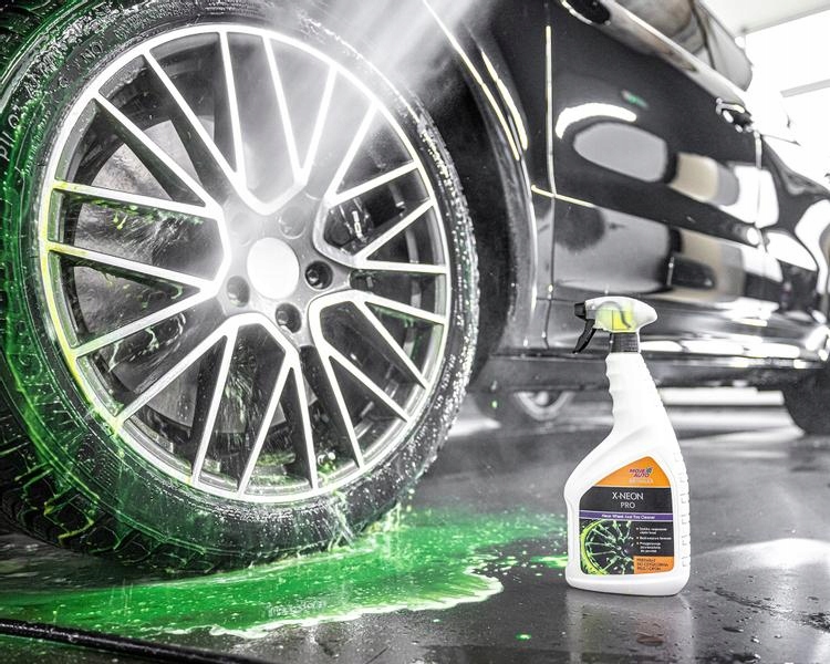 x-neon Pro-це непорушена підготовка до швидкого та ефективного очищення ободів та шин. Видаляє сильну бруд, гальмівний пил та інші домішки, залишаючи блискучі ободи. Спеціальна формула проникає в шину, видаляючи навіть складний бруд. Знищує поверхню шини, готуючи її до одягання або покриття. Безпечний для сталевих та алюмінієвих ободів, він містить інгібітори корозії. Ідеально підходить для швидкого очищення коліс без ризику подряпин, ви можете застосувати за допомогою піни.