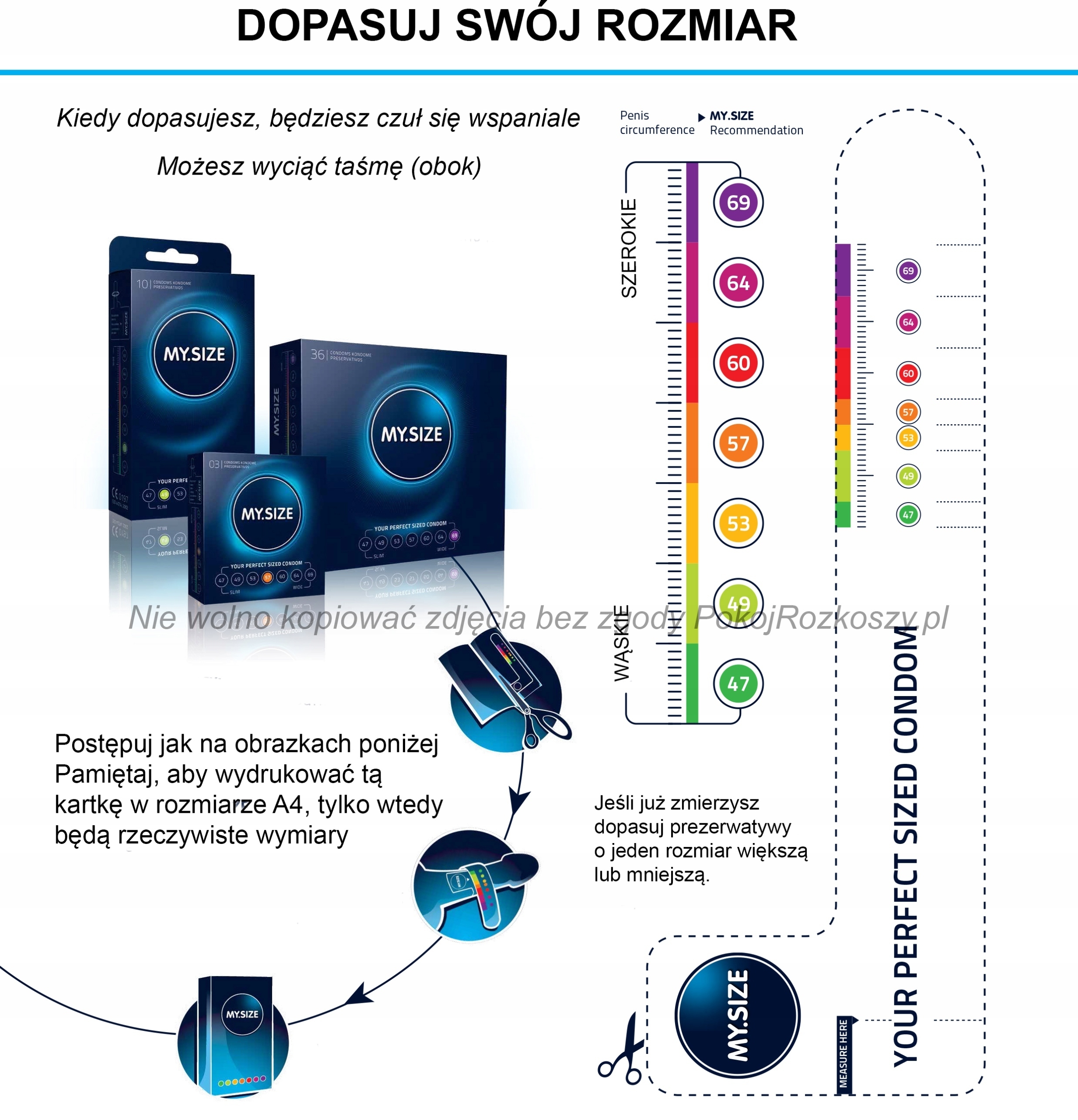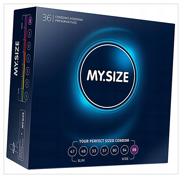 Ідея мого розміру полягає в тому, щоб забезпечити чоловікам презервативи, максимально підходящені до їх анатомії. Оскільки стандартні зазвичай занадто вузькі або занадто широкі, ми розміром пропонуємо нам презервативи в семи розмірах, діаметром від 47 до 69 мм. Така ідеальна відповідність дає користувачеві найбільш природний досвід під час статевого акту. Кінець вже з занадто вільною еластикою, прагне котитися або занадто щільно, позбавляючи дихання пеніса і викликає дискомфорт під час проникнення.