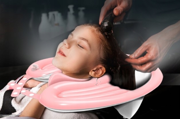 Просто надуйте, покладіть під шию та без ризику бризок на руки чи навколишнє середовище спокійно мийте волосся.