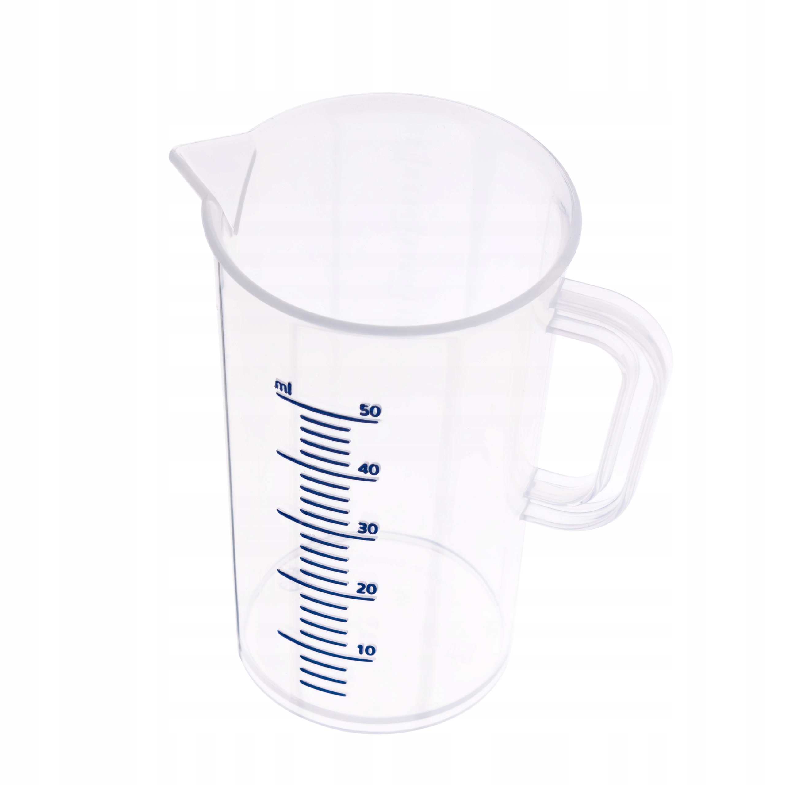 Мірний стакан з ручкою. Шкала з тисненням синього кольору. З інсультом. Ручка полегшує перенесення склянки та її вмісту.