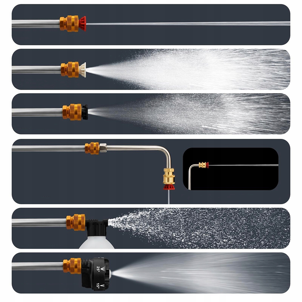 Поворотна насадка 6 в 1: швидко змінюйте режим потоку, обертаючи наконечник! Налаштуйте тиск і кут відповідно до конкретної поверхні.