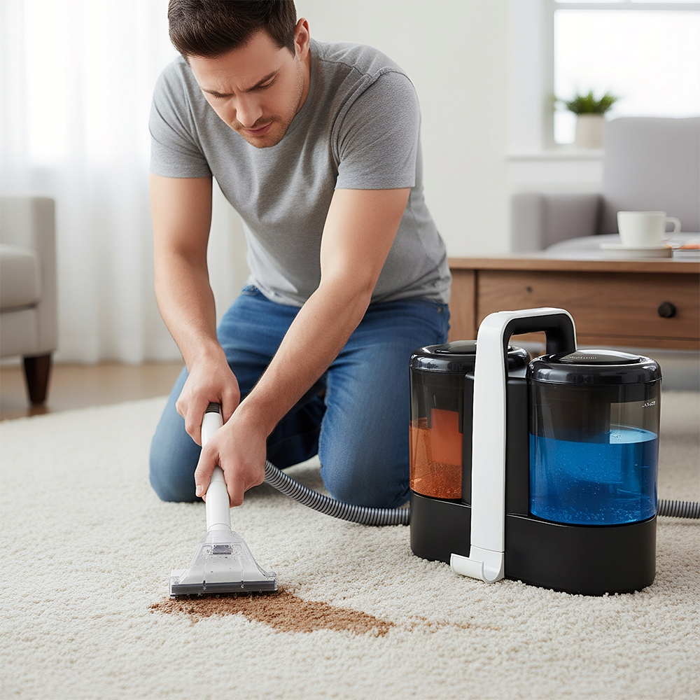 - Оснащений надпотужним двигуном потужністю 600 Вт із потужністю 15 кПа, цей пилосос для оббивки та килимів миттєво видаляє глибокий бруд, сліди тварин (зокрема сечі, посліду, волосся), червоного вина, розлитої кави та інших стійких плям - результати очищення на 60% ефективніші, ніж у випадку звичайних портативних пилососів. Професійний 3-етапний процес чищення (розпилення → чищення → пилососом) розщеплює та видаляє бруд із волокон тканини, забезпечуючи швидке висихання, залишаючи килими, матраци та дивани дезінфікованими, оновленими та позбавленими запаху - ідеально підходить для будинків з великою прохідністю, власників домашніх тварин та алергіків, які потребують глибокого та ретельного чищення.
