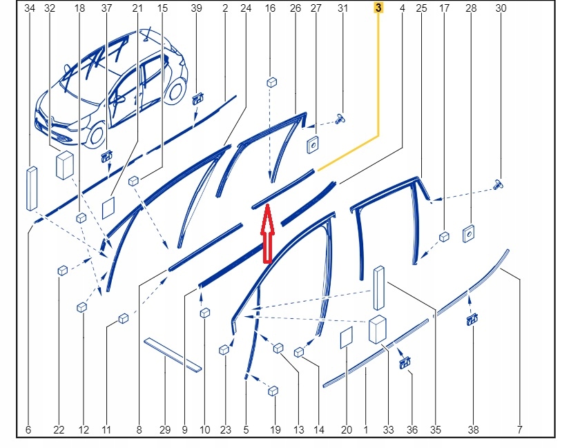 МІЖНІШНЯ ВІКОННА РАМА ЗАДНІ ДВЕРІ CLIO IV