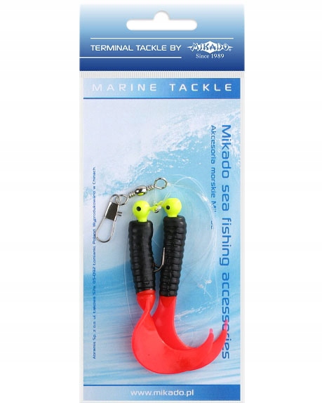 Класична балтійська бірка для тріски, що складається з двох твістерів довжиною 7,5 см, озброєних джиг-головкою вагою 3 г. Завдяки легкій вазі головки набір не заплутується. Ідеальний набір для легкої риболовлі. Перевірені, класичні кольори приманки: чорне тіло і червоний хвіст. Набір завершується вертлюжком з безпечною шпилькою з боку пількера та петлею з мононитки з боку основної волосіні.