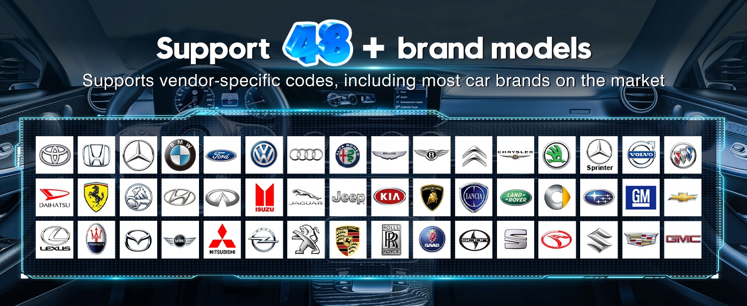 Нещодавно оновлений сканер OBD2 підтримує понад 96% марок і моделей транспортних засобів, охоплюючи автомобілі з 1996 року до сьогодні. Це гарантує, що практично будь-який власник транспортного засобу може отримати вигоду від його широкого спектру функцій. Пристрій також підтримує кілька мов, зокрема англійську, німецьку, іспанську, фінську, французьку, італійську, голландську, португальську та китайську.