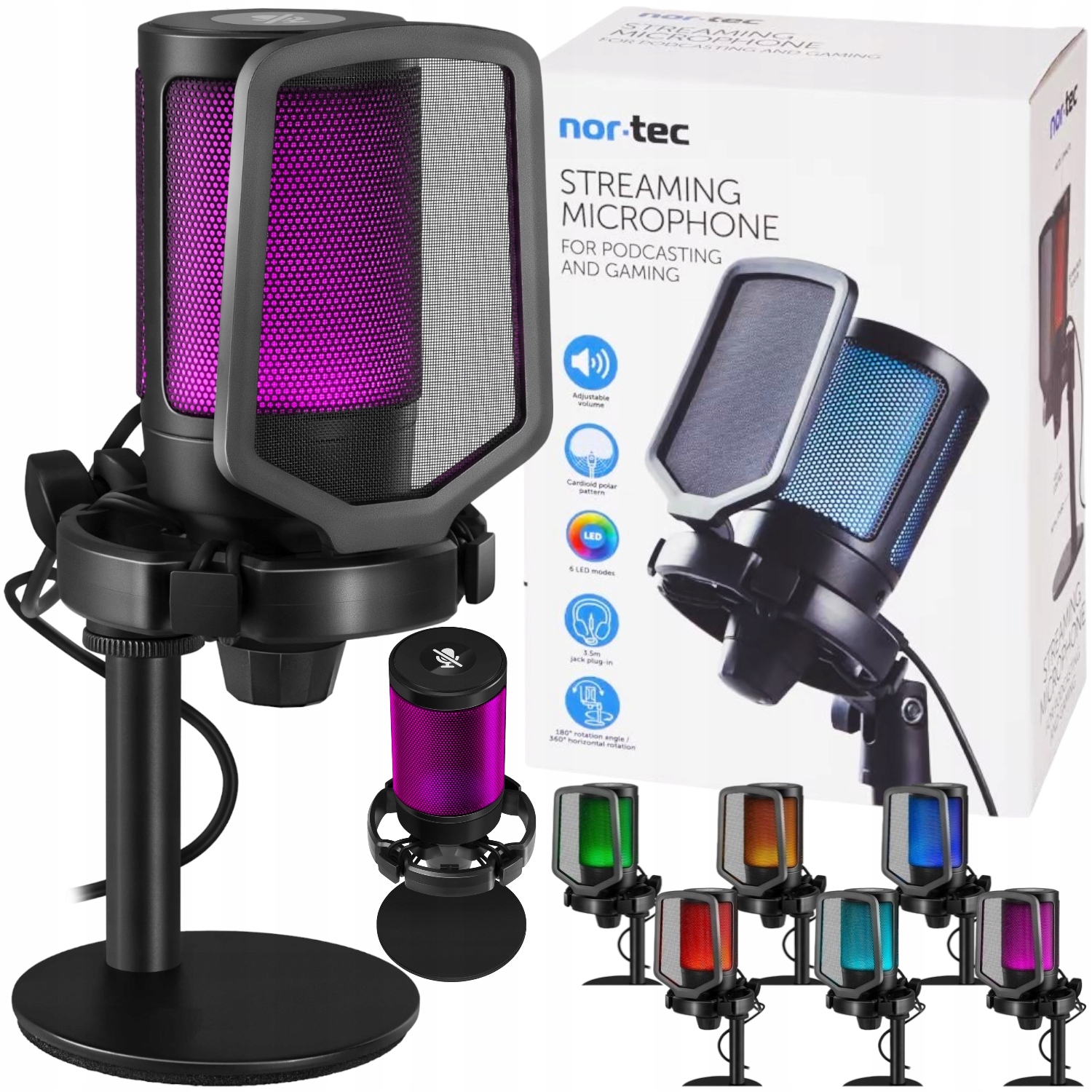 MIKROFON DO STREAMINGU ZE ŚWIATŁEM LED GAMINGOWY USB OBRACANY DO KOMPUTERA