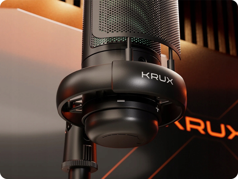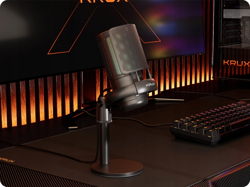 Полегшення та спрощення - це одне, але питання залишається - де стиль? Немає дефіциту мікрофона Krux Epic 1000S, оскільки під чорною кришкою корпусу та капсули є підсвічування RGB, що світить, як тисяча барвистого сонця. Ви ставите його перед собою на свій стіл, починаєте комп’ютер і раптом все навколо вас стає приємнішим. Ви отримуєте Krux Epic 1000s разом із робочим столом. Завдяки цьому ви встановите мікрофон прямо за клавіатурою або прямо перед собою. Це стабільне рішення, яке вас не турбує, особливо коли вам не потрібно мати мікрофон на рухому бумі. Встановіть його і займе мінімальний простір і не танцюватиме на столі.
