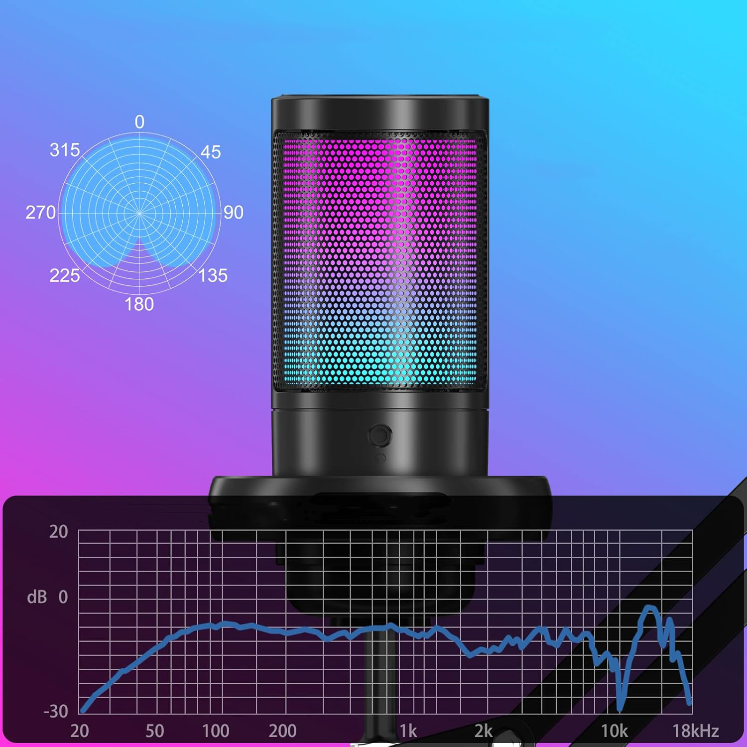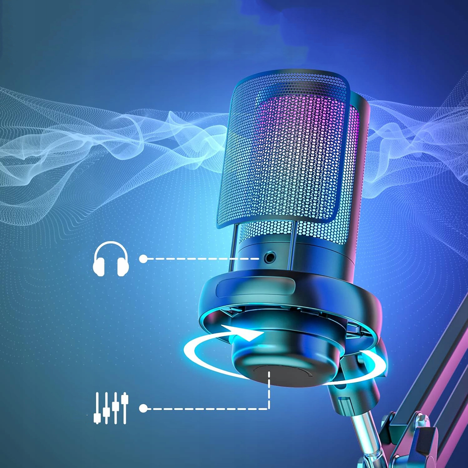 Мікрофон USB для ігор, ємнісний мікрофон RGB, студійний мікрофон, чорний
