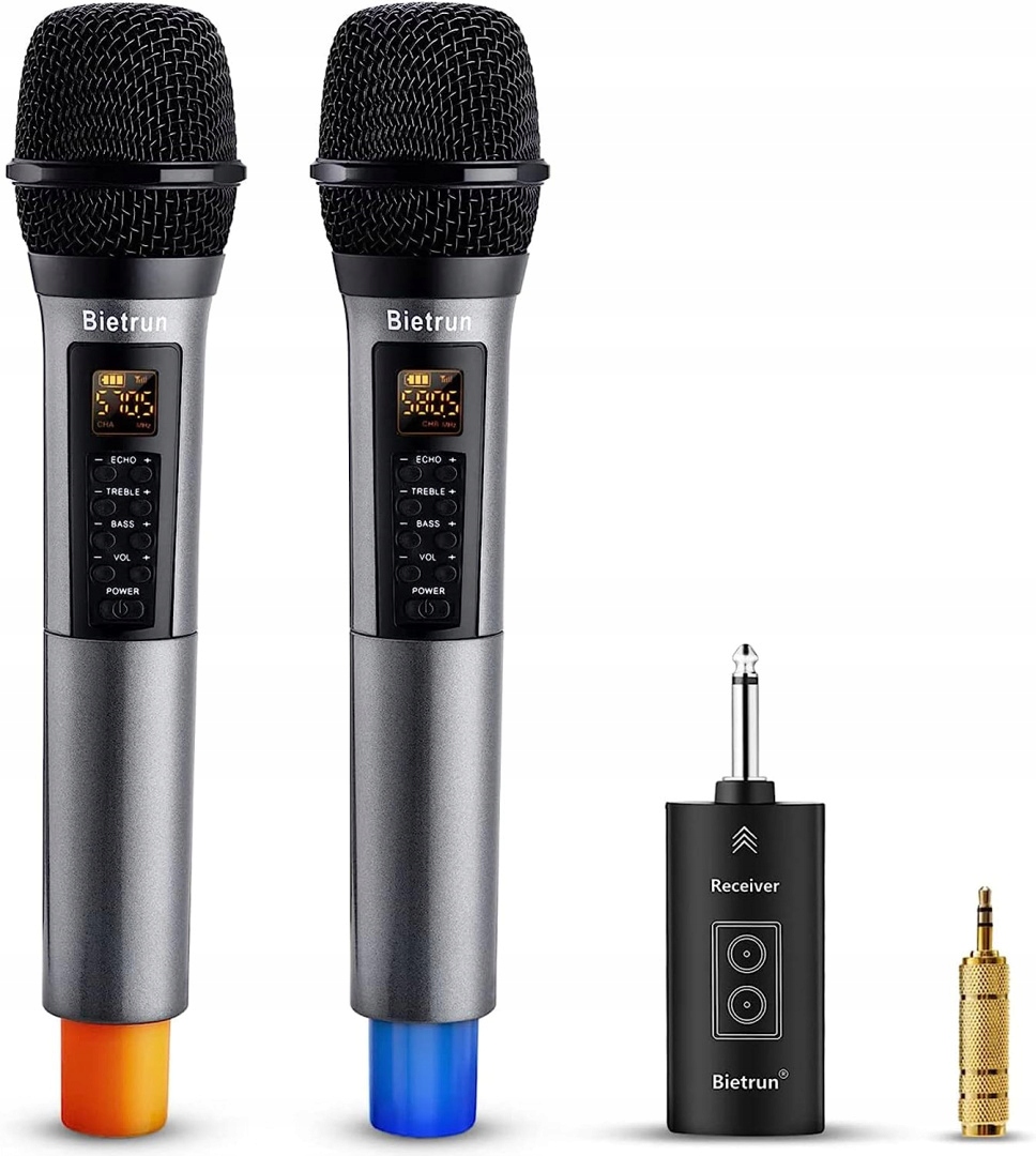 бездротовий мікрофон для караоке Bluetooth Bietrun, портативний подвійний ручний динамічний мікрофон UHF зі звуковими ефектами в діапазоні басових/ехо/високих тонів, 30 м приймач акумулятора до караоке, промов, шоу, конференцій