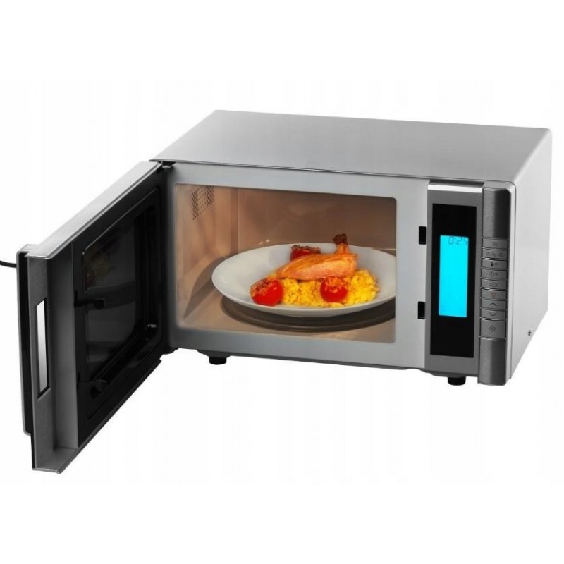Об'єм мікрохвильової печі становить 20 літрів, тому об'єму вистачить для приготування улюбленої страви. Пристрій дуже простий у використанні. Плита виготовлена з нержавіючої сталі, завдяки чому виріб легко миється, а бруд і бактерії не так швидко осідають на плиті. Корпус також стійкий до корозії та високих температур.