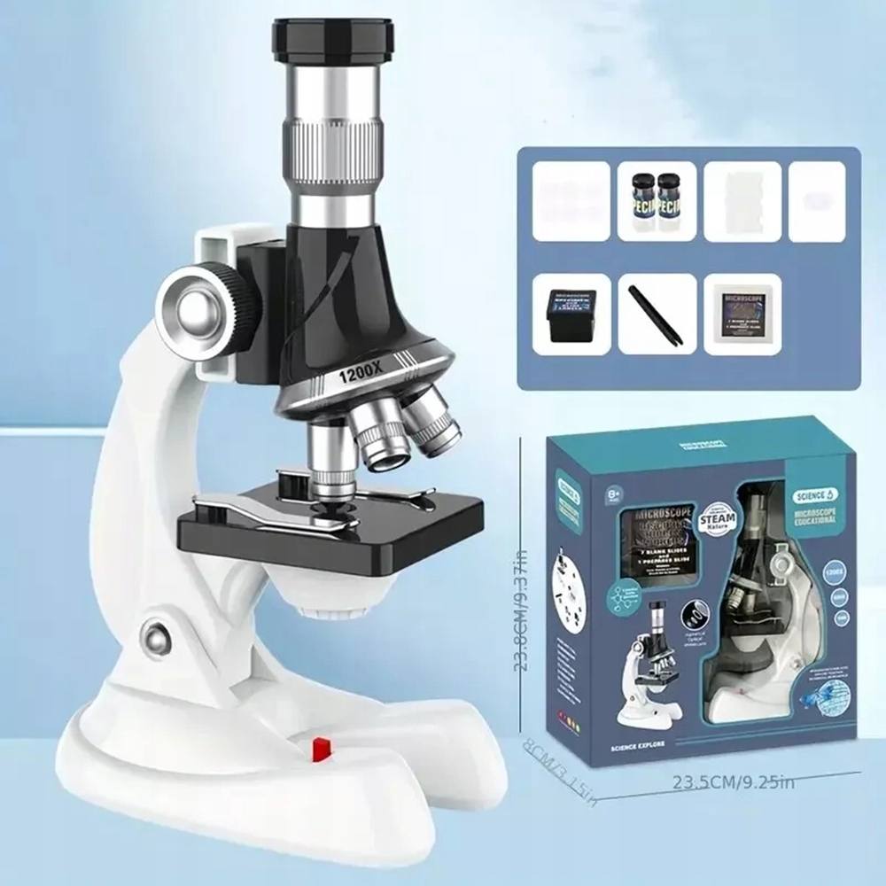 🔬🔬【Три основні збільшення】Педіатричний мікроскоп оснащено ширококутними окулярами HD з високою пропускною здатністю світла для легкого та чіткого спостереження. Разом із об’єктивом він пропонує 3 типи збільшення (100X/600X/1200X). Виконуйте різноманітні щоденні хобі, досліджуйте складну структуру та властивості різноманітних об’єктів і вдосконалюйте пізнавальні здібності дітей до зовнішнього світу та їхньої уяви.