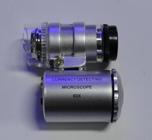 МІКРОСКОП КИШЕНЬКИЙ ЗБІЛЬШУВАЛЬНИЙ 60X LEDx2 UV (9882)