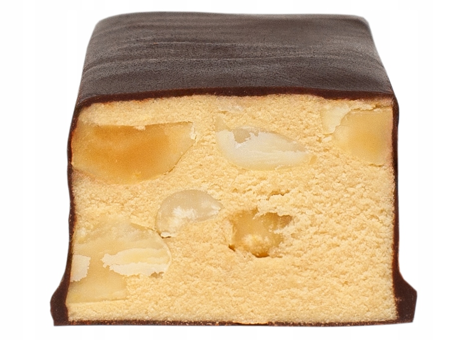 інгредієнти: гайки ( 56,5 %) %) , шоколад (14,7%) (какао -м’якоть, підсолоджувач мальтитолу, какао -масло, какао зі зниженим вмістом жиру, емульгатором лецитину, натуральним ароматом ваніль), концентратом яблучного соку, виділенням білка гороху (14%) (містить 85% протеїну ), Рожева гімалайська сіль. Вміст білка рослини - 29%. 247 ккал