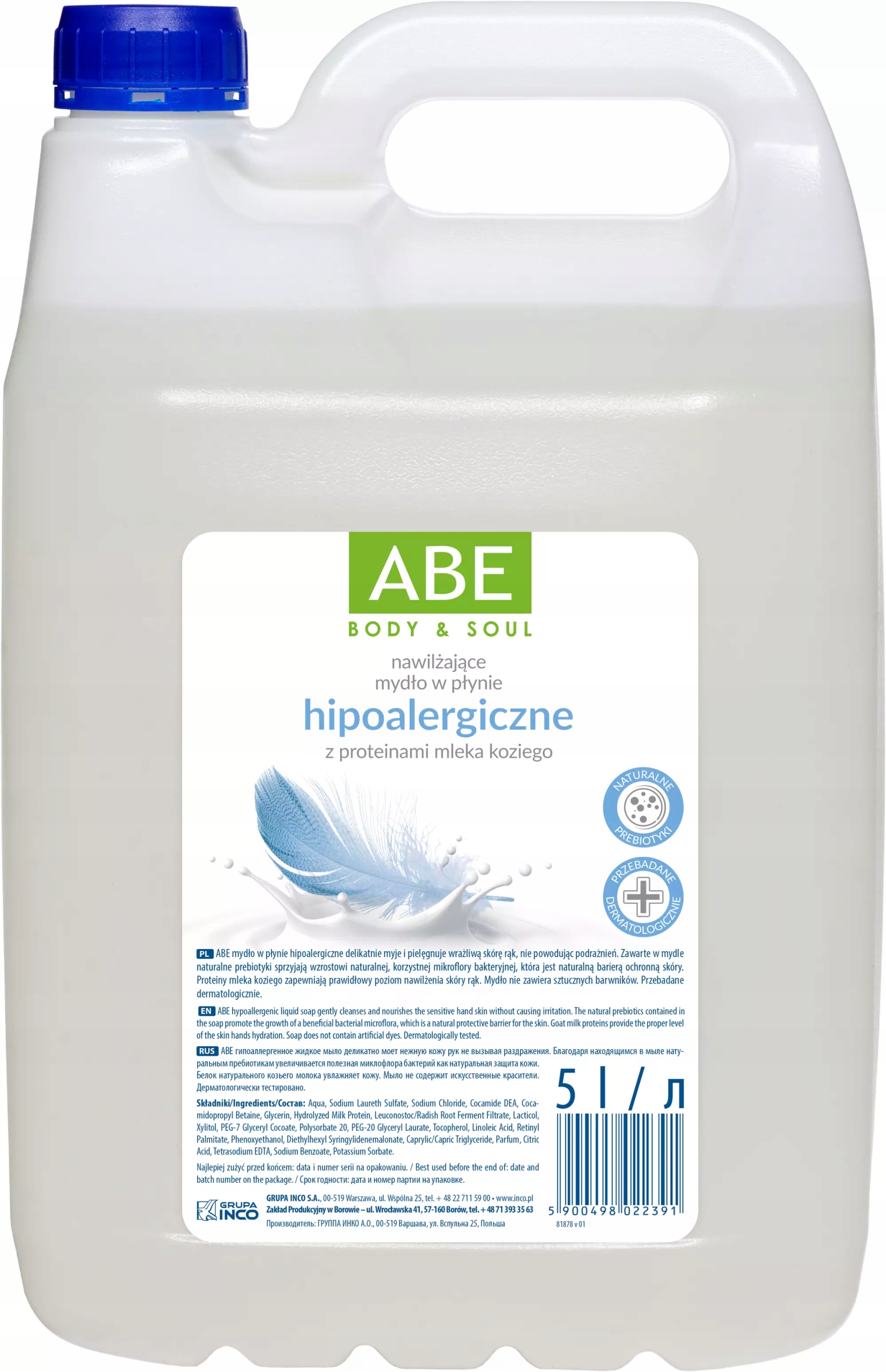 Шукаєте мило, яке забезпечить вашій шкірі ніжний та ефективний догляд? Гіпоалергенне рідке мило ABE об'ємом 5 літрів - ідеальне рішення для людей з чутливою шкірою, схильною до алергії. Завдяки ретельно підібраним інгредієнтам мило не тільки очищає, але й підтримує природний захисний бар'єр шкіри.
