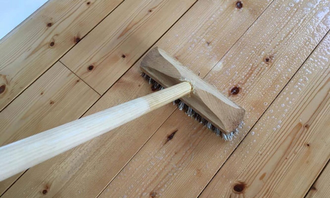 1. Щоб почистити деревину на відкритому повітрі, нанесіть на поверхню мило з лляною олією, розведене на 20-60% води, жорсткою губкою. Сильно забруднені поверхні можна протирати сталевим скребком. Мило з лляною олією потрібно залишити на 15-30 хвилин, а потім змити водою.