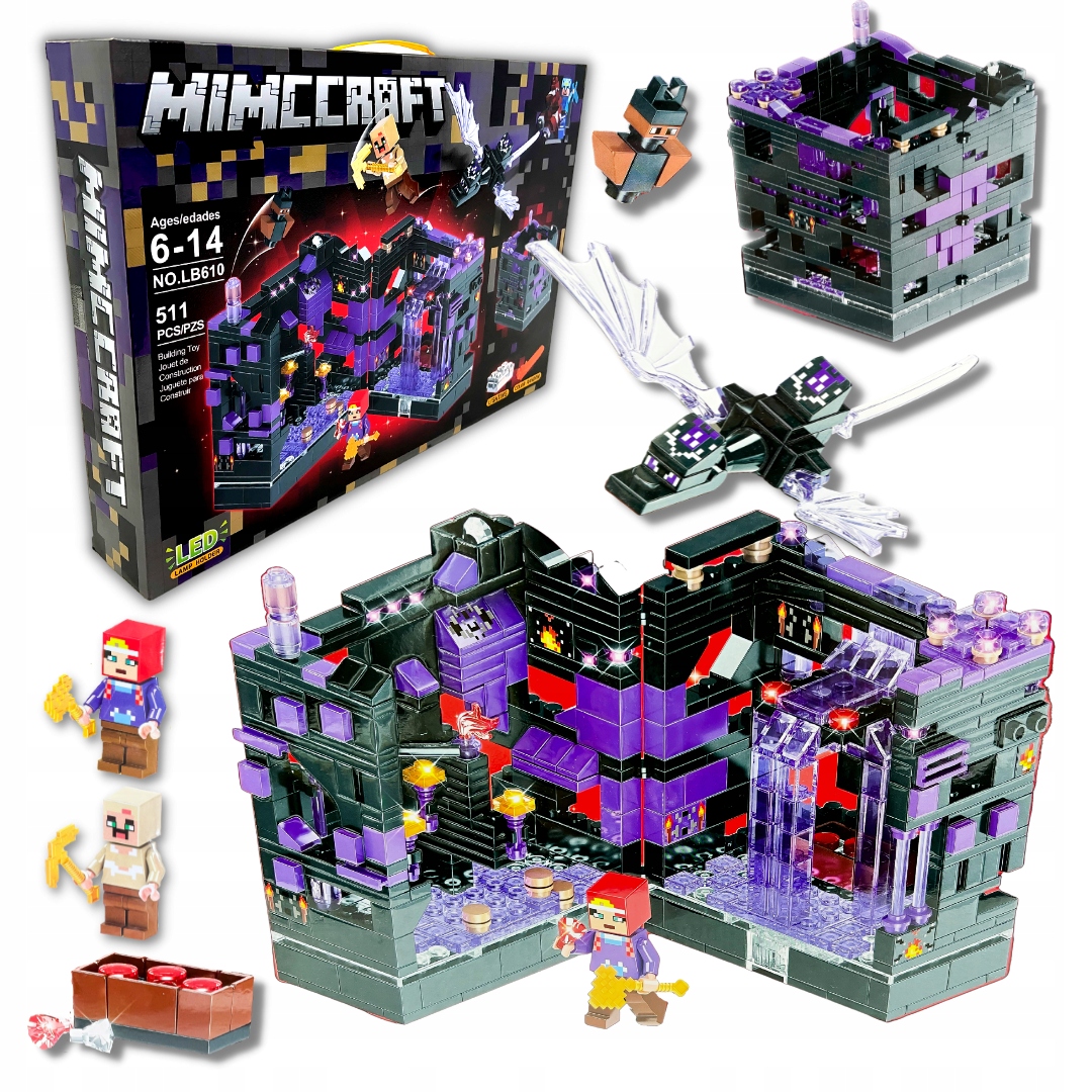 Minecraft MYWORLD БЛОКУЄ АТАКУ ДРАКОНІВ НА ФІОЛЕТОВУ ФОРТЕЦЮ LED 511 шт.