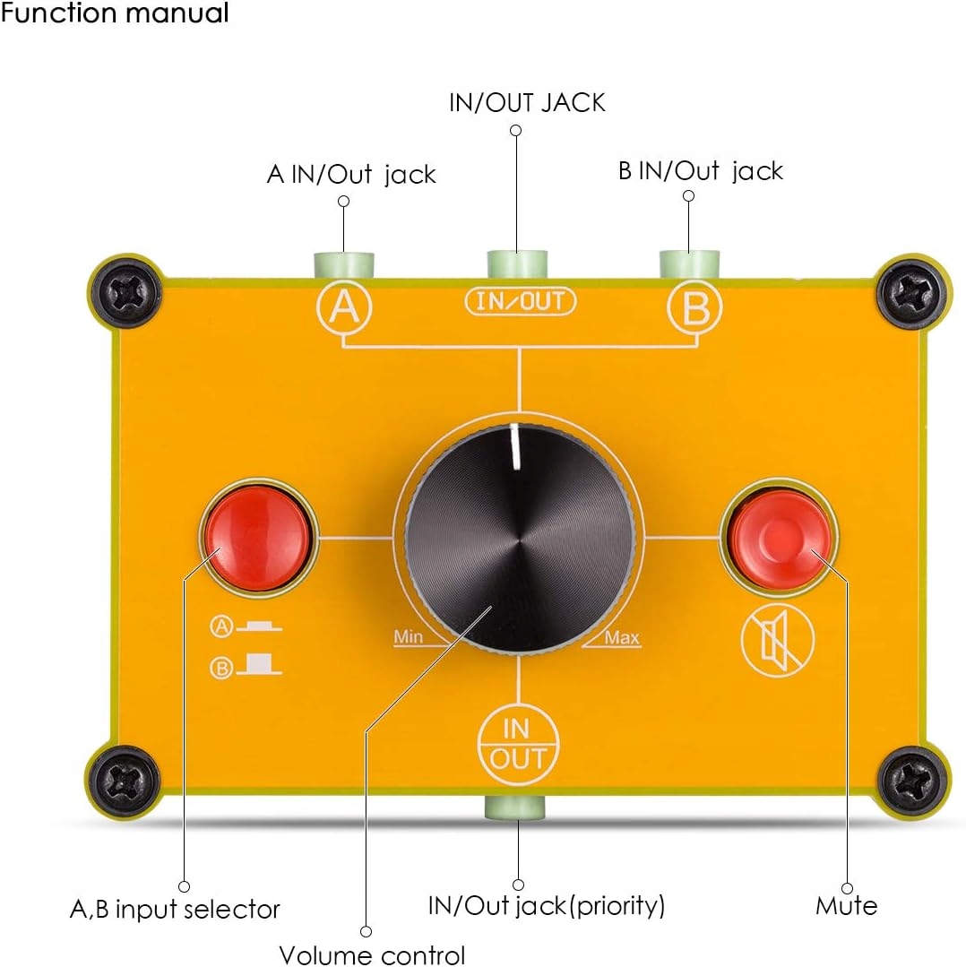 - Кнопка A/B: простий вибір пристрою, який буде використовуватися як аудіовхід або вихід, не потрібне живлення чи додаткове програмне забезпечення