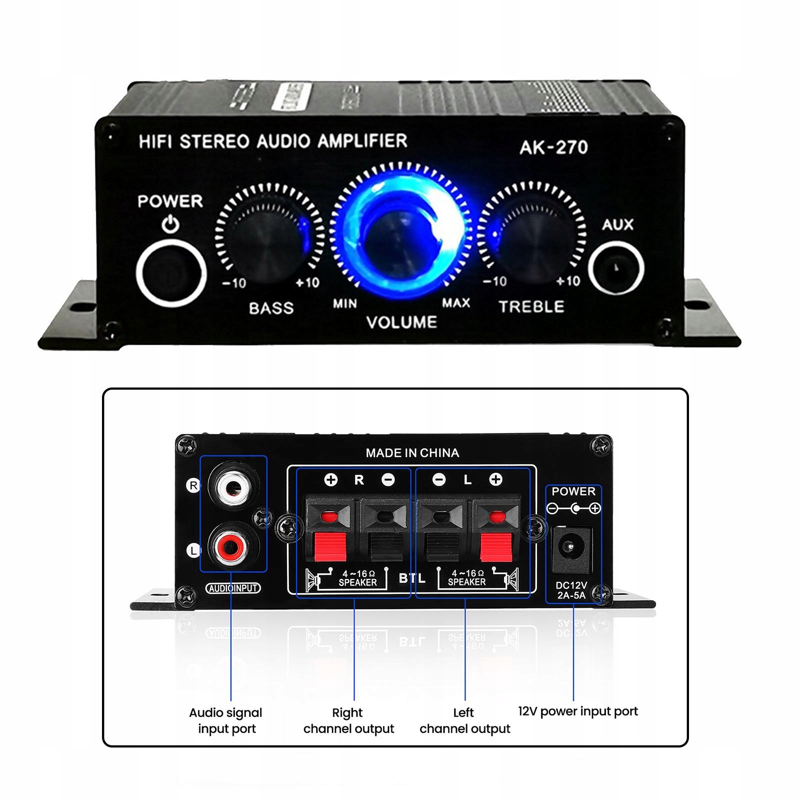 Міні-аудіопідсилювач, канальний вхід із входом 3,5 мм AUX.