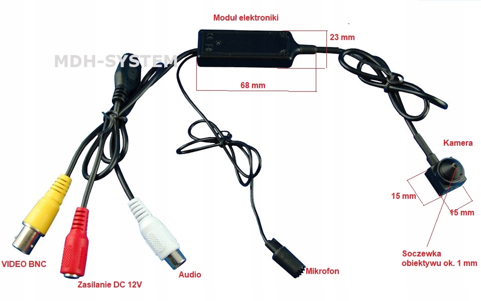 Розміри: камера: 15 x 15 x 19 мм, електронний модуль: 68 x 23 x 10 мм