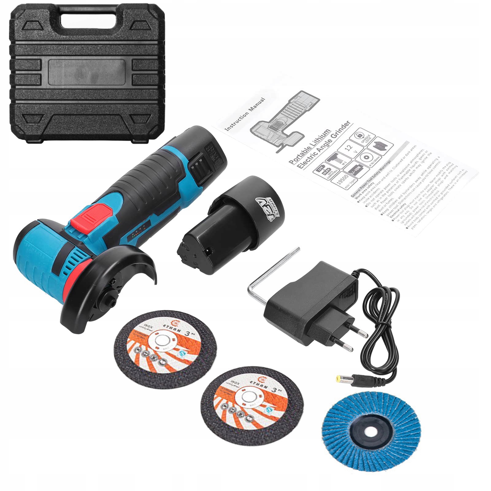 МІНІ КУТОВА ШЛІФУВАЛЬНА МАШИНА АКУМУЛЯТОРНА БЕЗЩІТКОВА ГУМА 2x АКУМУЛЯТОР 3x ДИСК