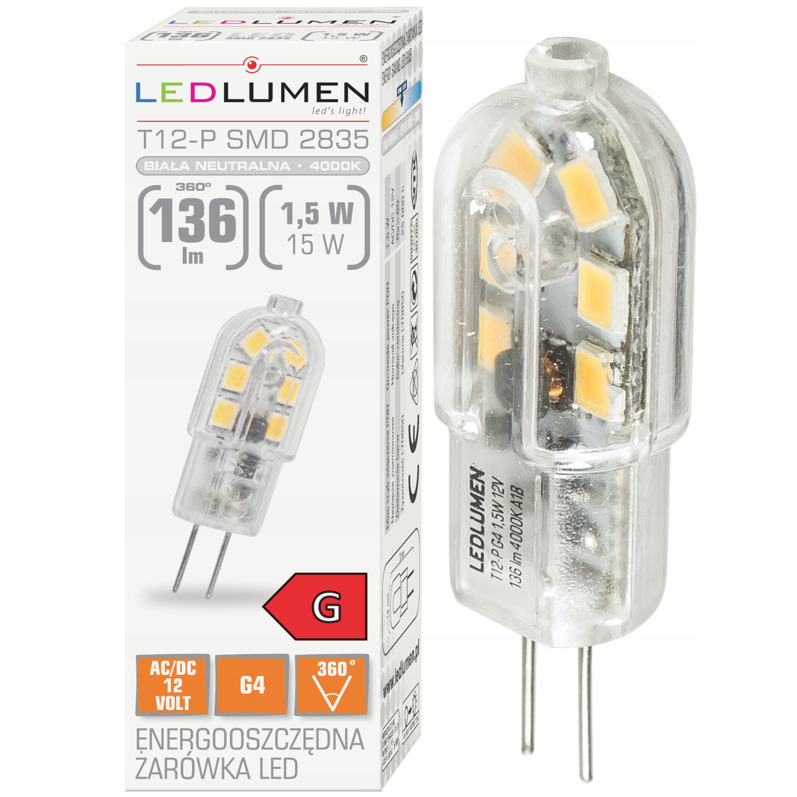 - Назва товару: T12-P G4 1,5 Вт 12 В 12x2835 LED NW