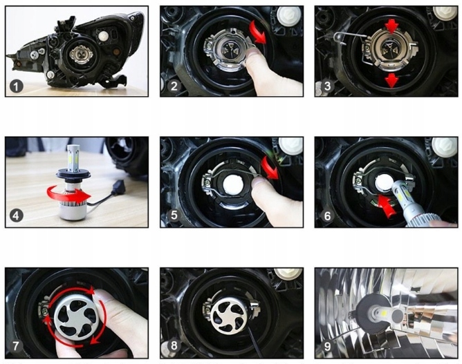 Компактний розмір набору, підходить для більшості фар. Для підключення замість оригінальних лампочок.