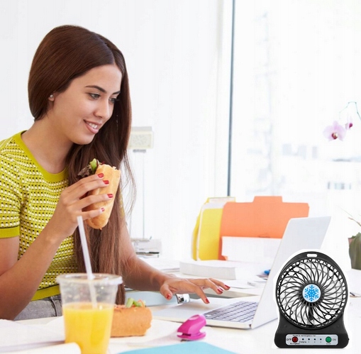Він невеликий за розміром і, незважаючи на непомітний вигляд, він справді міцний. Можливість переносити цей пристрій, завдяки встановленому акумулятору вентилятор не потрібно постійно підключати до джерела живлення або USB.