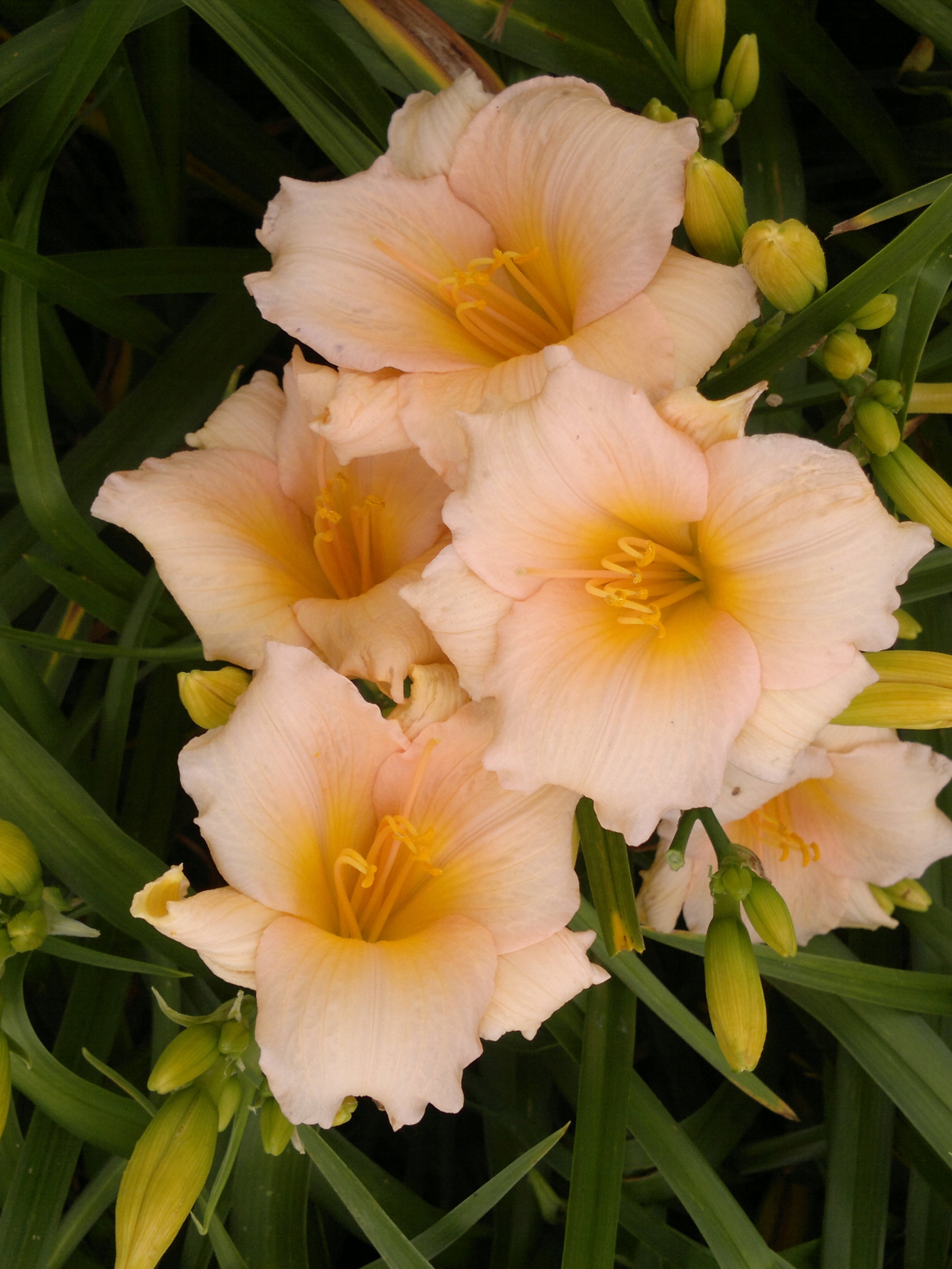 Лілійник Міні Перл (Hemerocallis)невибагливий довгоживучий багаторічник з кремово-лососевими квітками. Характеризується рясним цвітінням.