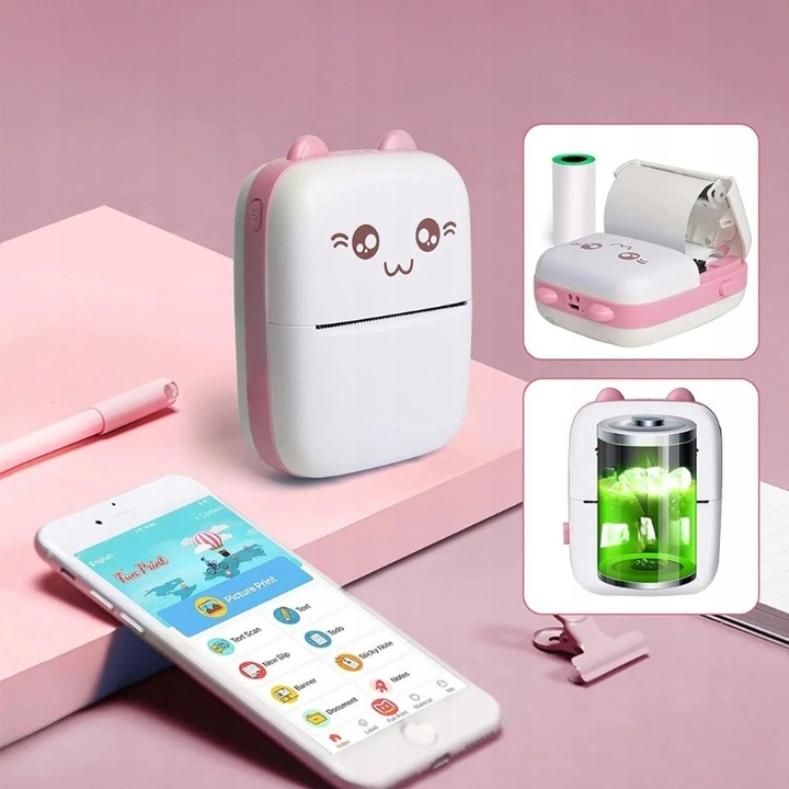Міні-термопринтер це не тільки милий! Його головні переваги - мобільність і універсальність. Легко поміщається в сумочку або рюкзак, дозволяючи друкувати в будь-яких умовах. Що не менш важливо, він не потребує використання тонерів чи чорнила, адже працює за технологією термодруку! :)