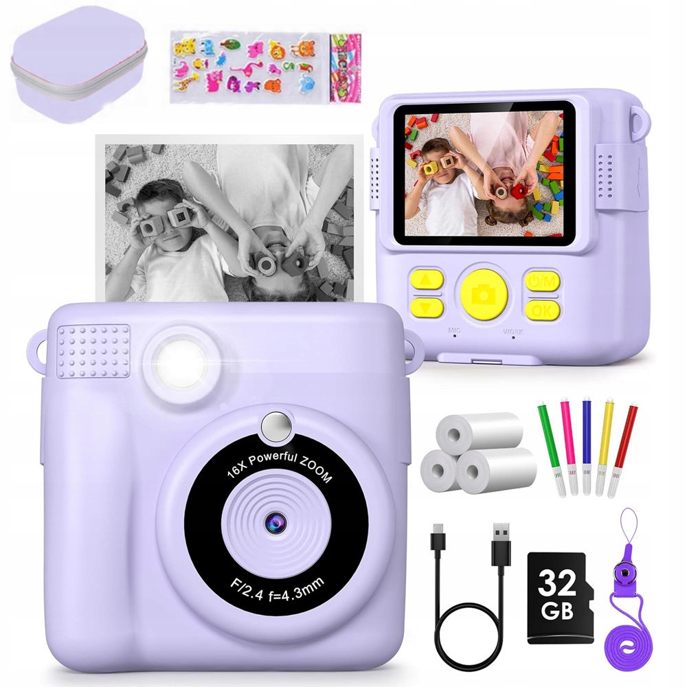 🟪🟣 - Ремінь такого ж кольору допомагає дітям брати камеру куди завгодно. 6 різнокольорових ручок дозволяють дітям розгулятися уявою та творчістю над друкованими чорно-білими фотографіями.