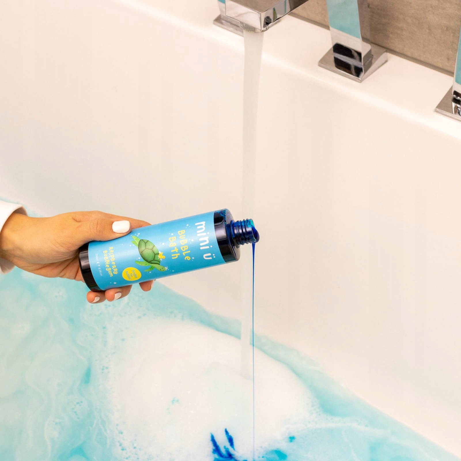 Пухлива ванна Mini U для дітей і немовлят забарвлює воду в блакитний колір і створює багато бульбашок. Піна, що нагадує пухнасті хмаринки та незвичайний аромат малинової жуйки, принесе велике задоволення найменшим, а виготовлена з натуральних та наднідних інгредієнтів. З цим продуктом жодне купання більше не буде нудним, а ванна перетвориться на місце чудових розваг!