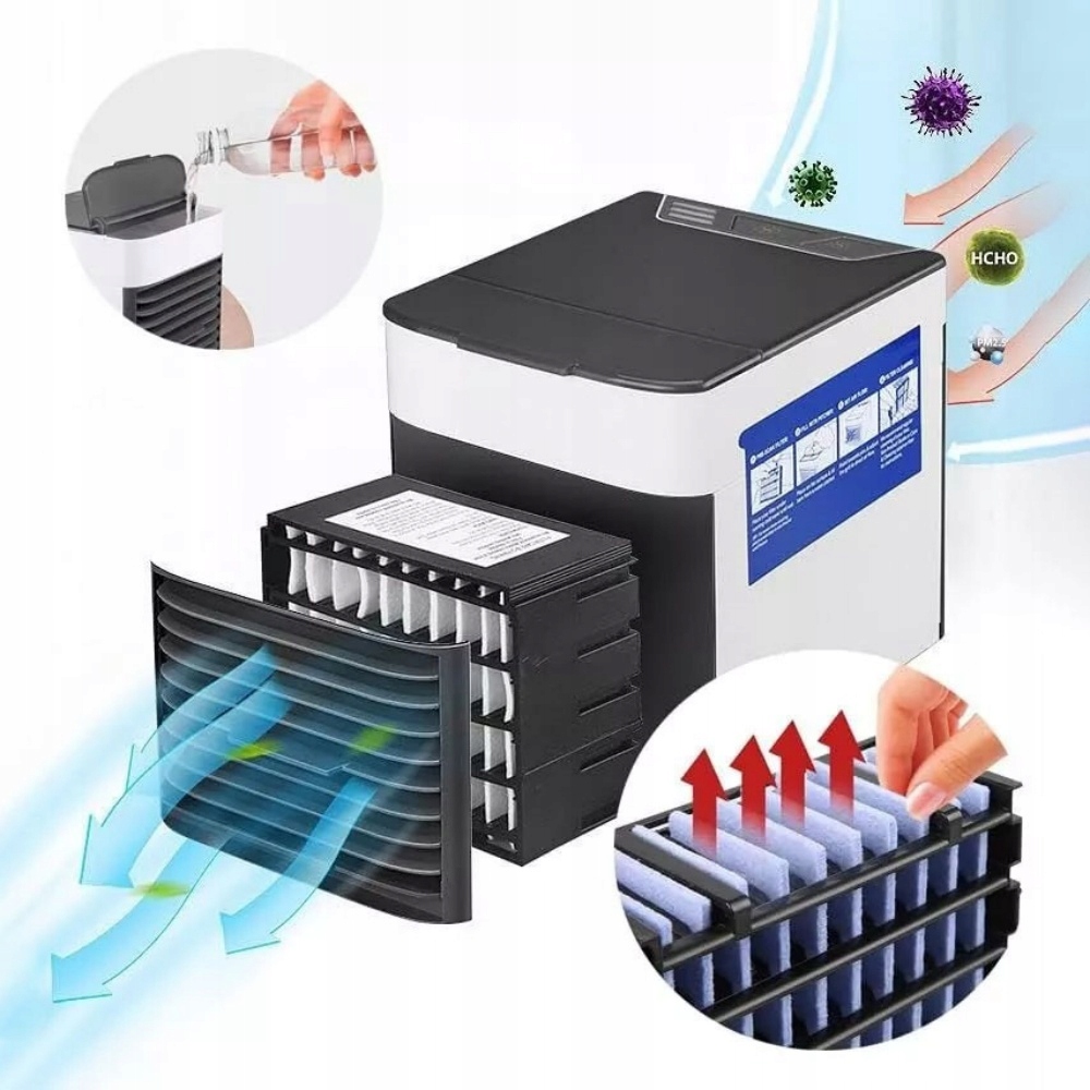 ✔ Цей портативний кондиціонер охолоджує, очищає та зволожує повітря навколо вас, де б ви не були. Завдяки цьому ви можете створити зручну атмосферу навіть у спекотні дні. Просто додайте воду, натисніть кнопку і насолоджуйтесь прохолодним повітрям.