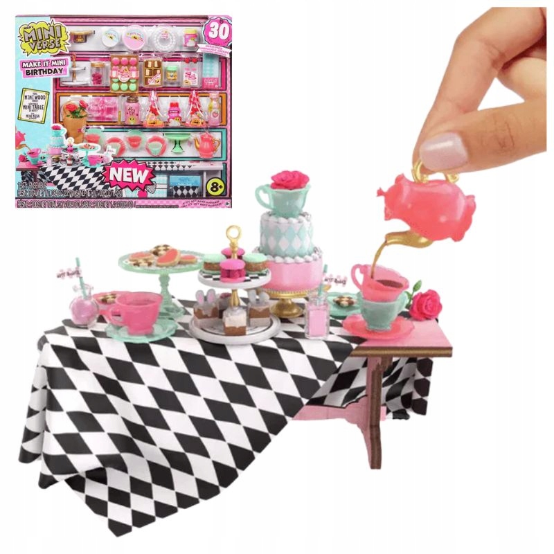 Кожен набір Mini Verse Make It Mini Birthday містить аж 30 елементів - від милих тарілок і чашок до прикрас для торта та міні-інгредієнтів. Дотримуйтесь інструкцій, щоб створити до 5 чарівних десертів на основі справжніх ласощів на день народження.