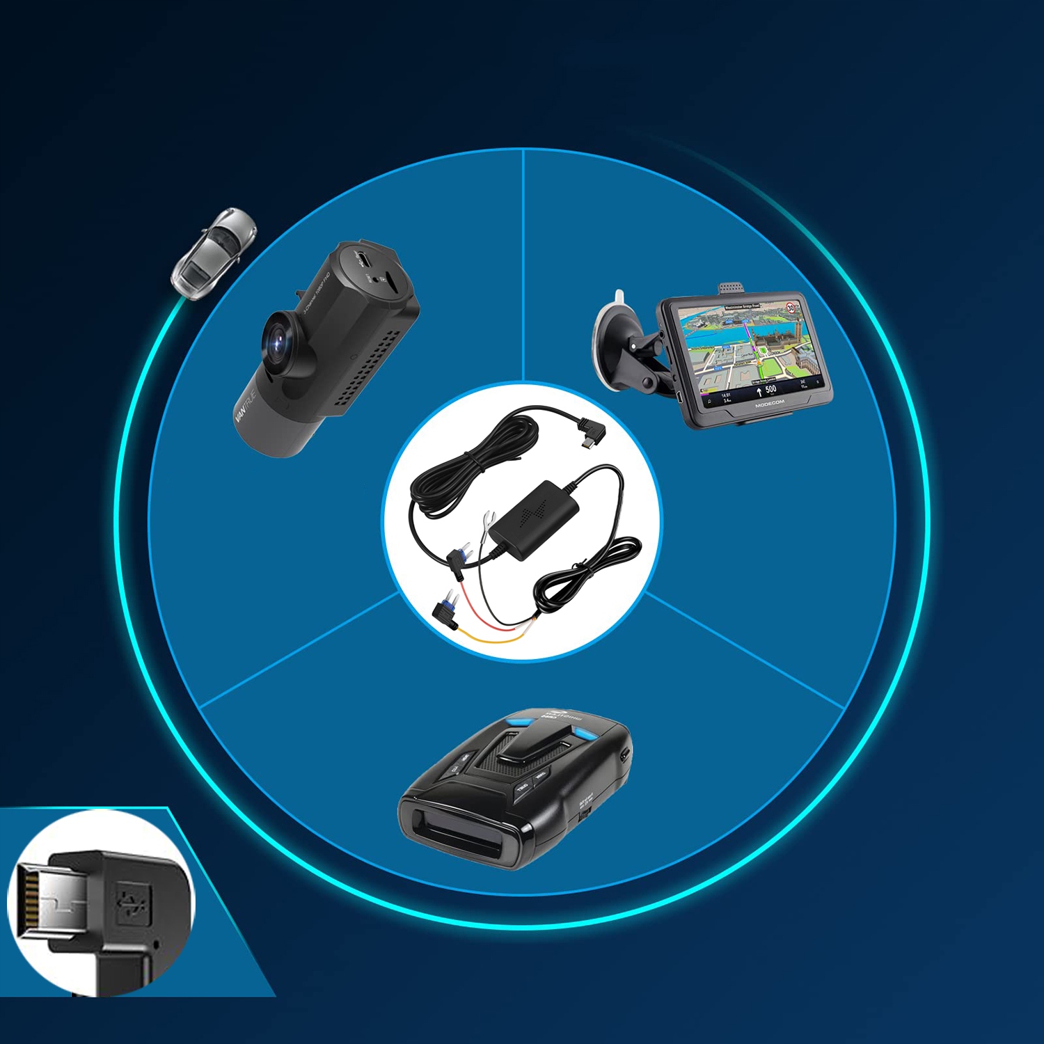 Mini Dockam/Mini USB 12V-24V радіолокаторний дієдар до 5В 2,5A