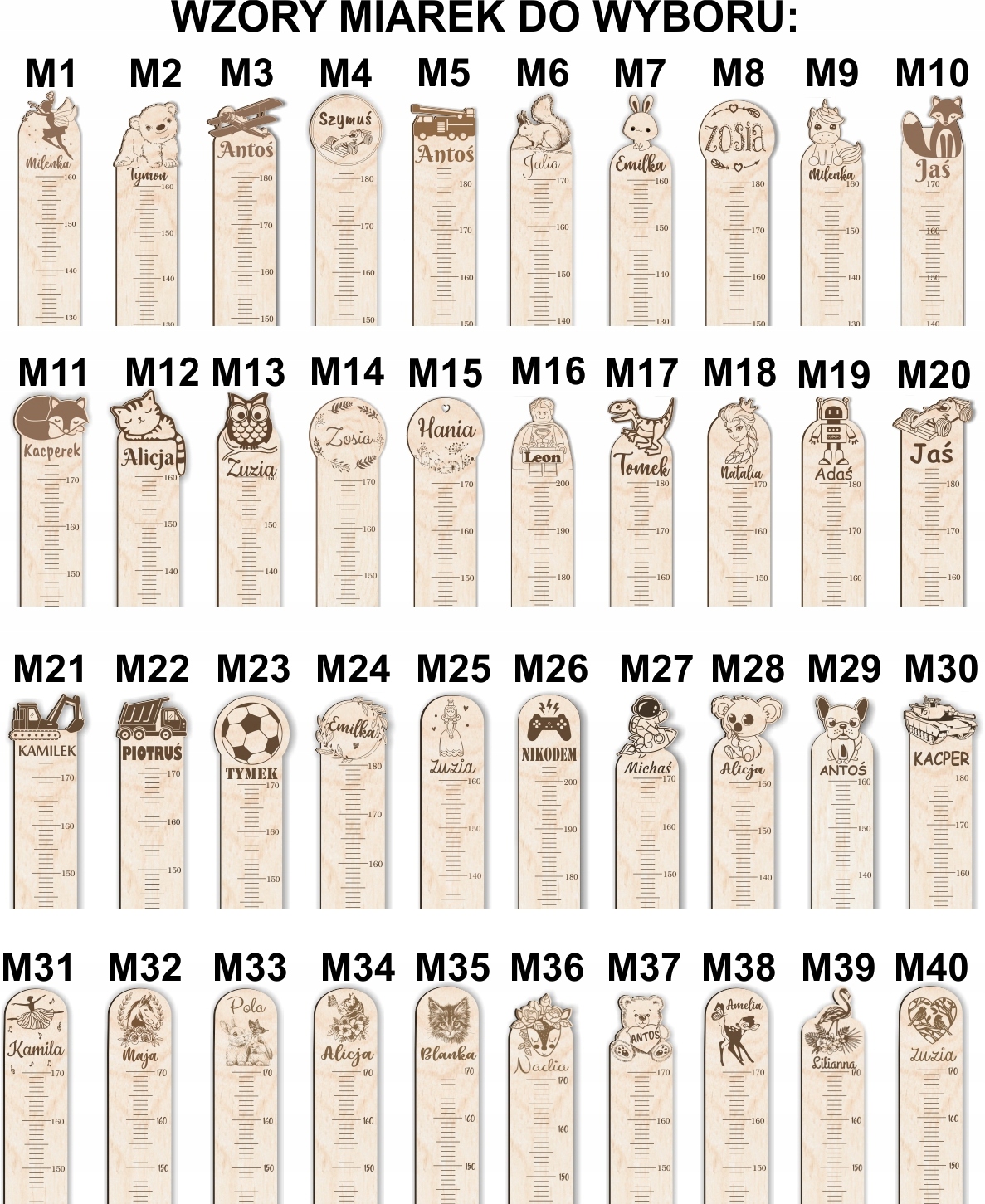 Дерев'яна мірка дозволяє не тільки стежити за ростом ваших дітей, але й також красива і атмосферна прикраса дитячої кімнати. Великий вибір візерунків допоможе задовольнити вибагливі дитячі смаки.