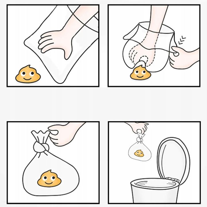 Сумки надзвичайно прості у використанні. Вам потрібно лише покласти на руку одну сітку (як рукавичка), захопити послід, а потім скочіть сумку і викиньте її. Це все :)