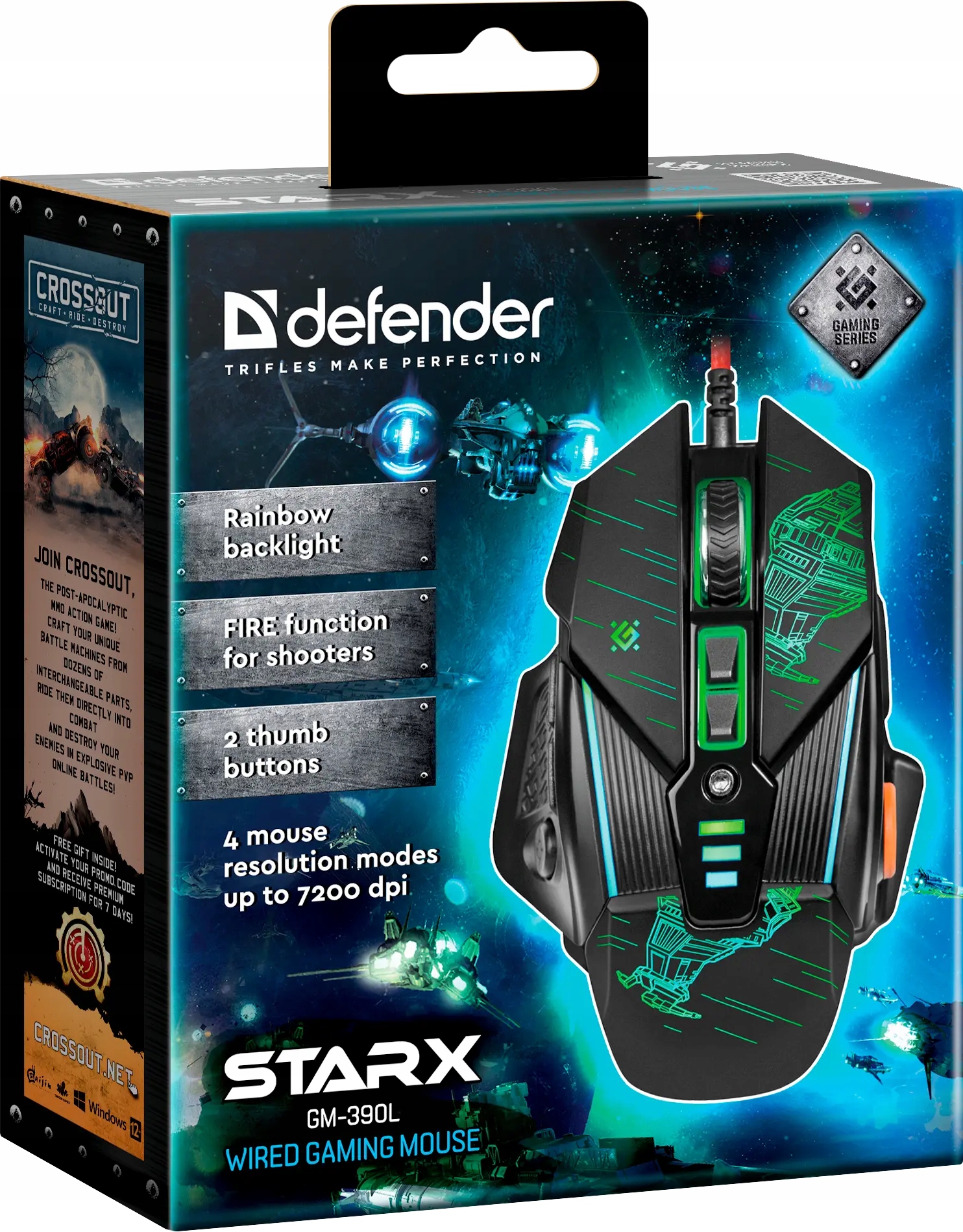 Дротова ігрова миша Defender STARX GM-390L — це передовий ігровий пристрій із роздільною здатністю до 3200 точок на дюйм і 8 програмованими кнопками, що ідеально підходить для вимогливих геймерів.