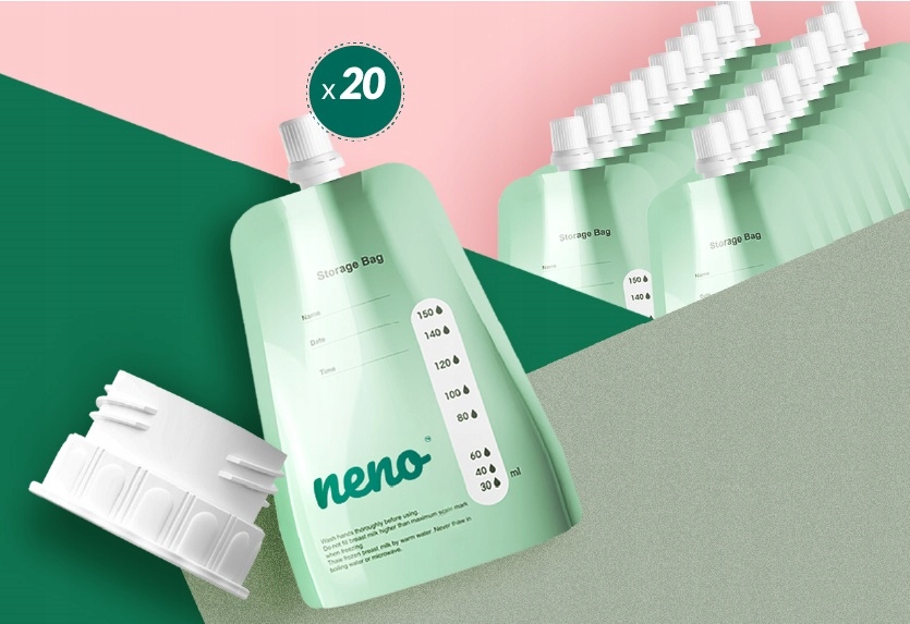 Набір пакетів Neno включає 20 одиниць упаковки для зберігання грудного молока та адаптер для молоковідсмоктувача, завдяки якому молоко можна зціджувати прямо в пакет - без переповнення!