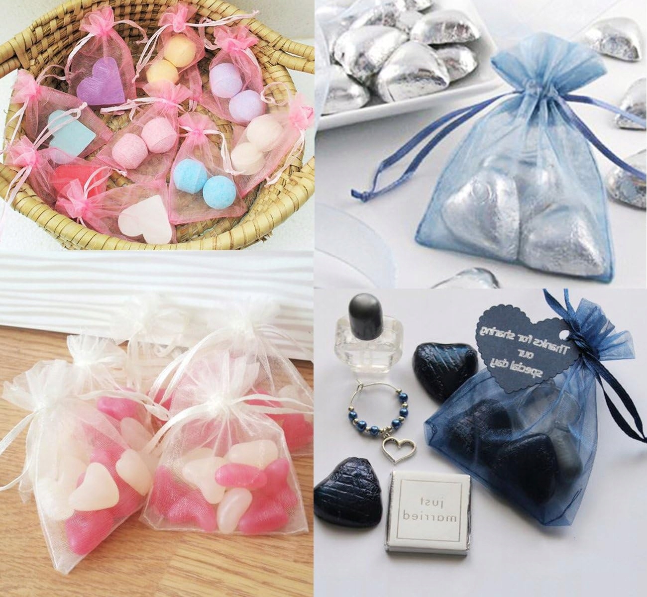 100 шматочків мішків -органзи, шоколадні подарункові пакети, квіти лаванди, печиво, солодощі, ювелірні вироби (10 х 15 см)
