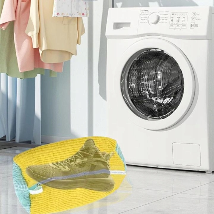 Спеціально розроблена сітка захищає взуття від деформації та пошкоджень під час прання. Сумка ефективно закріплює незакріплені елементи, такі як шнурки або устілки, завдяки чому фільтр і механізм пральної машини залишаються в безпеці. Міцна блискавка гарантує щільне застібання, запобігаючи випаданню взуття під час прання.