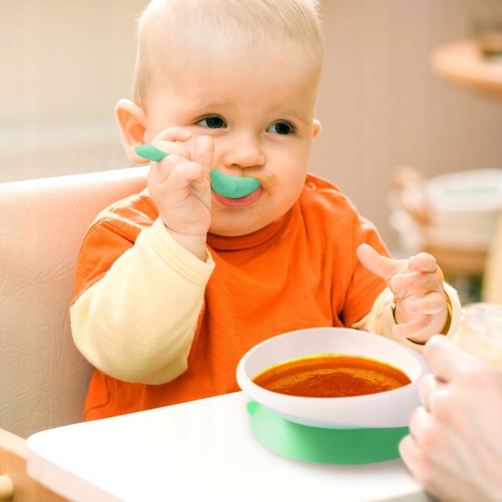 Чаша ідеальна при розширенні дієти дитини. Це також добре працює, коли вчитися їсти себе. Овальна форма миски полегшує отримання їжі з ложкою. Присоски захищають від ковзання судна на столі і захищають від вмісту. Це запобігає розливу вмісту та допомагає підтримувати порядок. Широкий край дозволяє утримувати миску в руці.