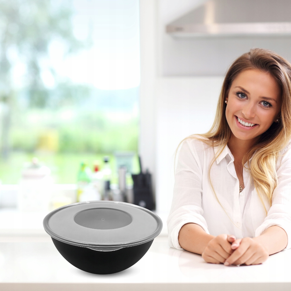 MISKA PLASTIKOWA DUŻA KUCHENNA Z POKRYWKĄ Na SAŁATKĘ PRZEKĄSKI 3L CZARNA