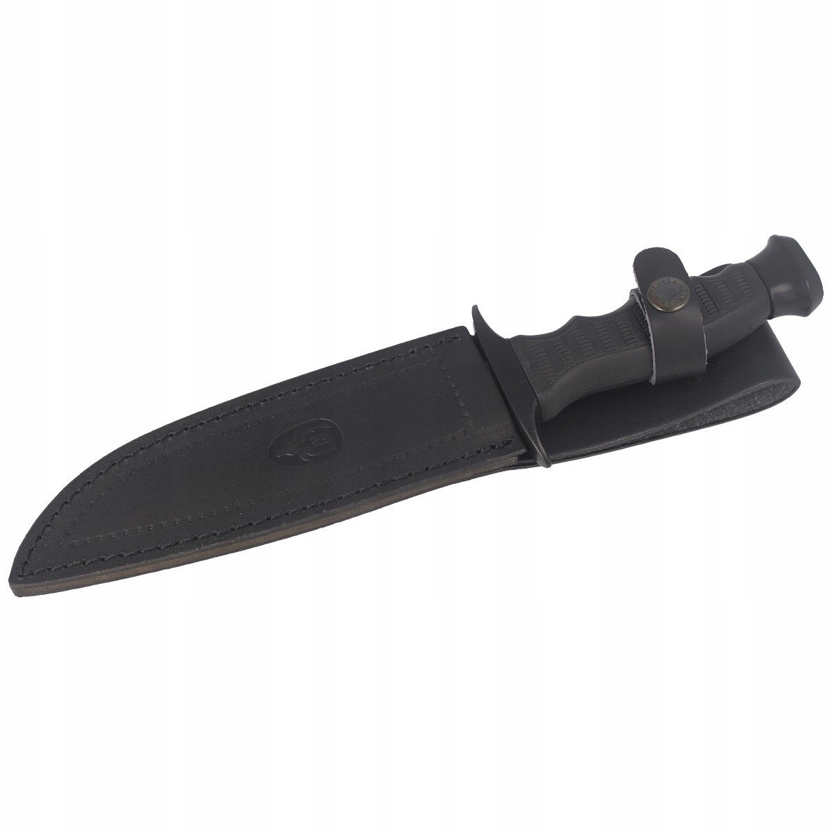 Чохол - з натуральної шкіри, чорного. Кріпиться на засув, що дозволяє безпечно переносити ніж. Краї піхви зшиті декоративною ниткою. Спереду тиснений логотип виробника. Піхви мають кріплення до пояса або обладнання, що дозволяє носити ніж у вертикальному положенні.