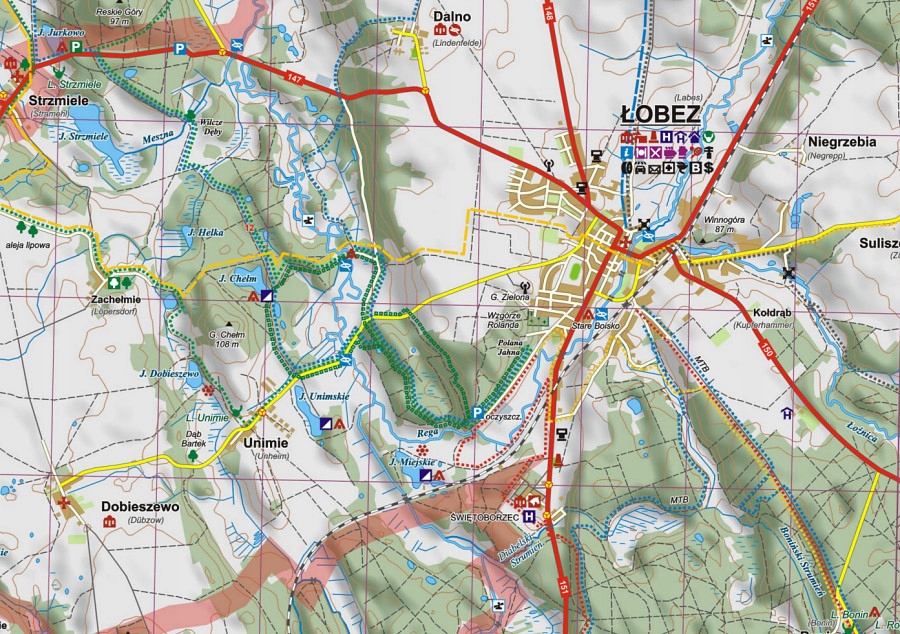 ТУРИСТИЧНА КАРТА ЛОБЕЗУ, МІСТА ТА МУНІЦИПАЛІТА 1:50000 GPS 3D + БАТИМЕТРИЧНІ ПЛАНИ ОЗЕР; KLĘPNICKO, DYBRZNO, KARWOWO, CHEŁM, UNIMSKIE
