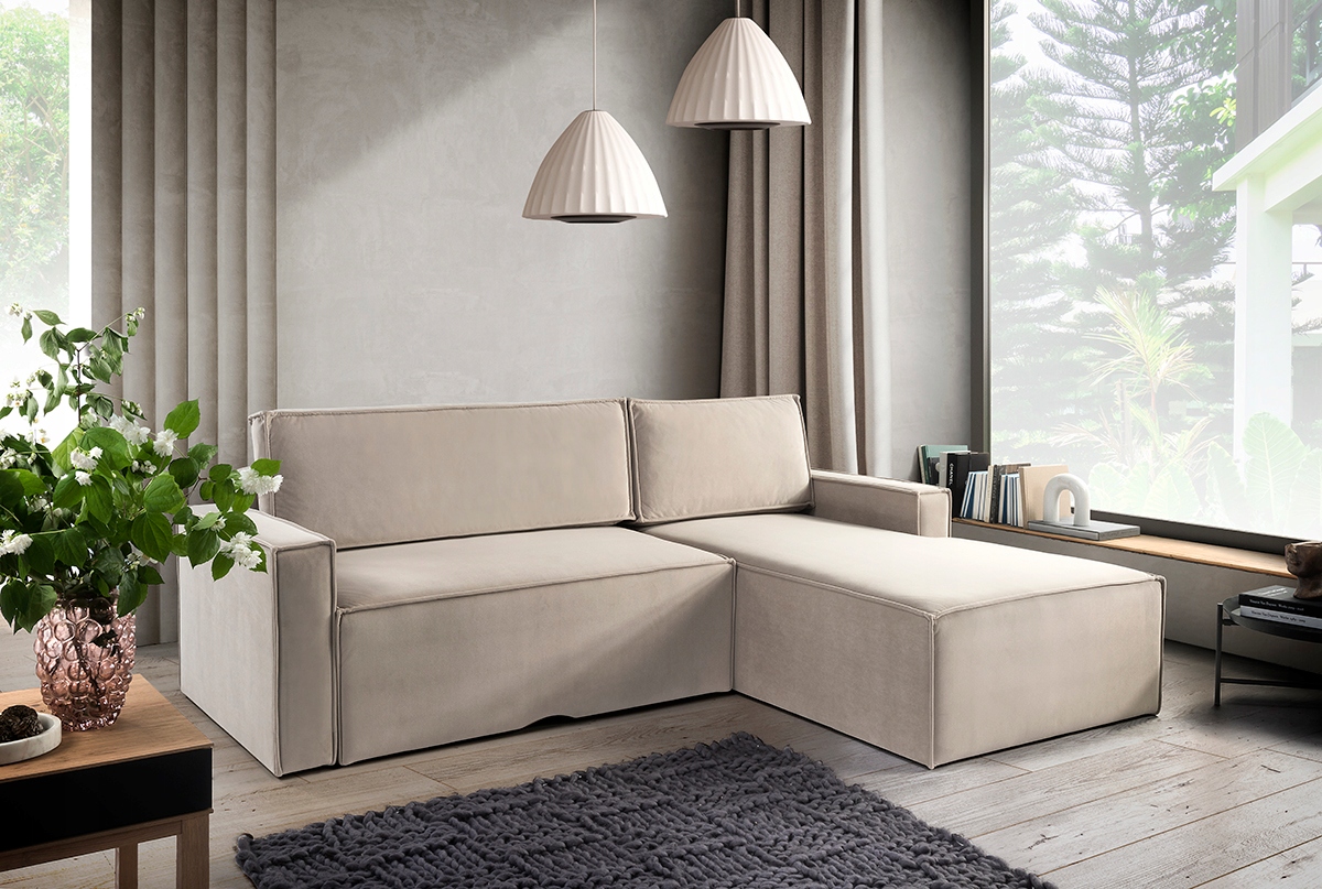 Кутовий диван Moon зі спальною функцією та контейнером для постільної білизни - це предмет меблів у сучасному стилі, який підходить до сучасного інтер'єру, функціональний та компактний завдяки своїм розмірам.