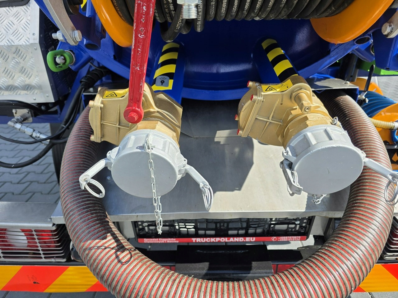 Система приводу дозволяє одночасно працювати обох насосів (всмоктування та тиску) з повними робочими параметрами.