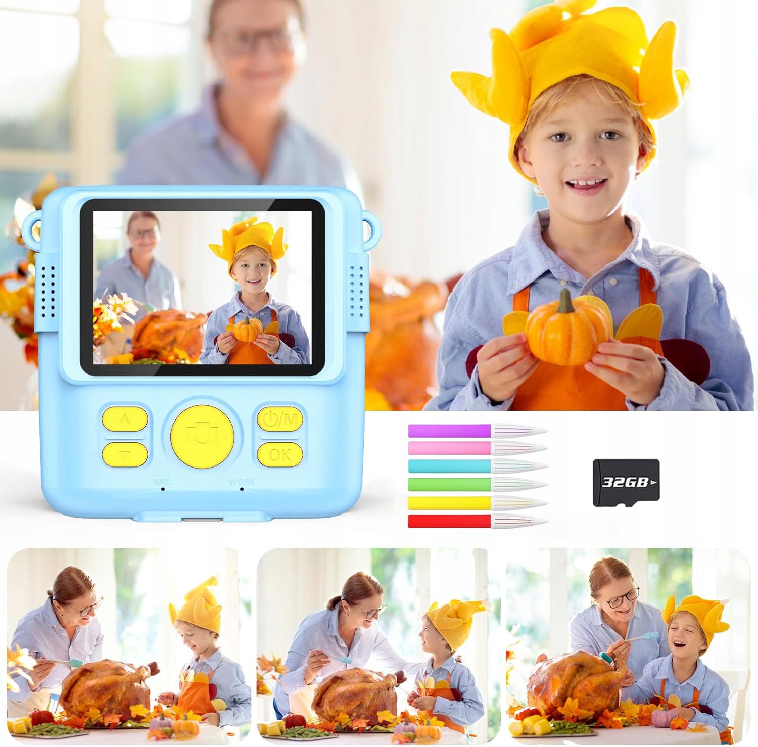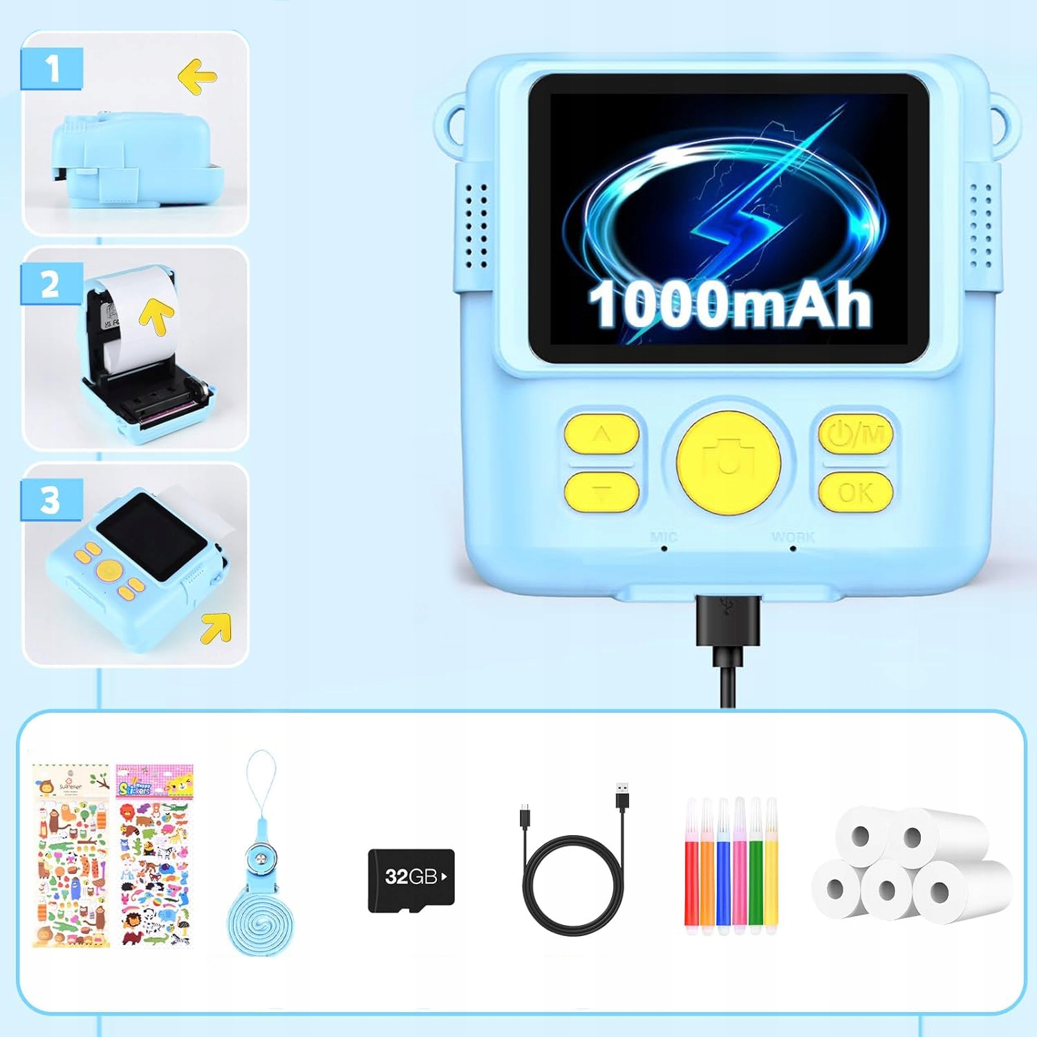Миттєва цифрова камера для дітей з принтером + 32 ГБ карта + 3 валики